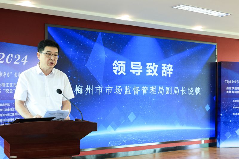 廖志成简要介绍学校情况及近年来科技创新情况,并提出校地校企合作和专利转化“校企”精准对接工作,一要加强校地合作,共同推进梅州高质量发展;二要加强科技赋能,服务梅州产业创新和升级;三要加强校企合作,打通成果转化最后一公里。