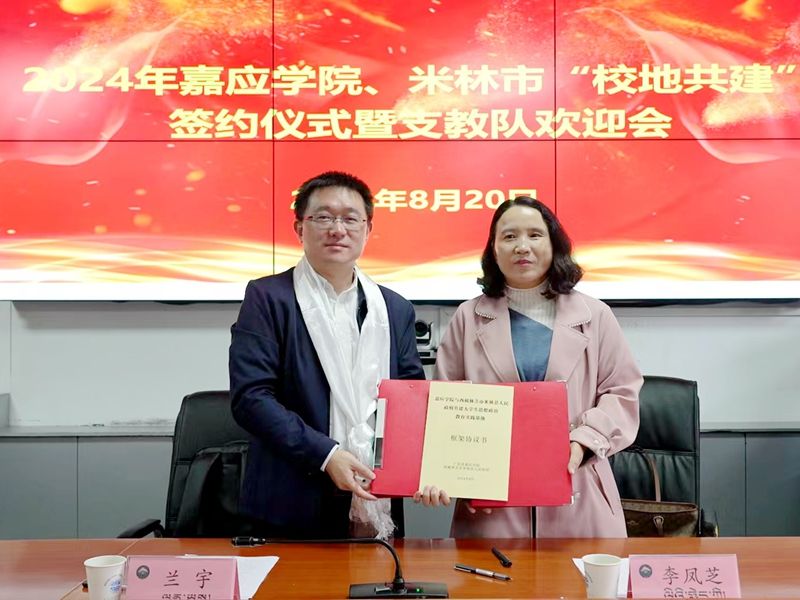 近日,西藏米林市教育局组织举行2024 年嘉应学院、米林市“校地共建”签约仪式暨支教队欢迎会。米林市人民政府副市长李凤芝,米林市教育局党组书记、局长姜涛,嘉应学院中山大学帮扶工作队队长兰宇,学校相关职能部门教师代表、援藏志愿者代表参加本次活动。
