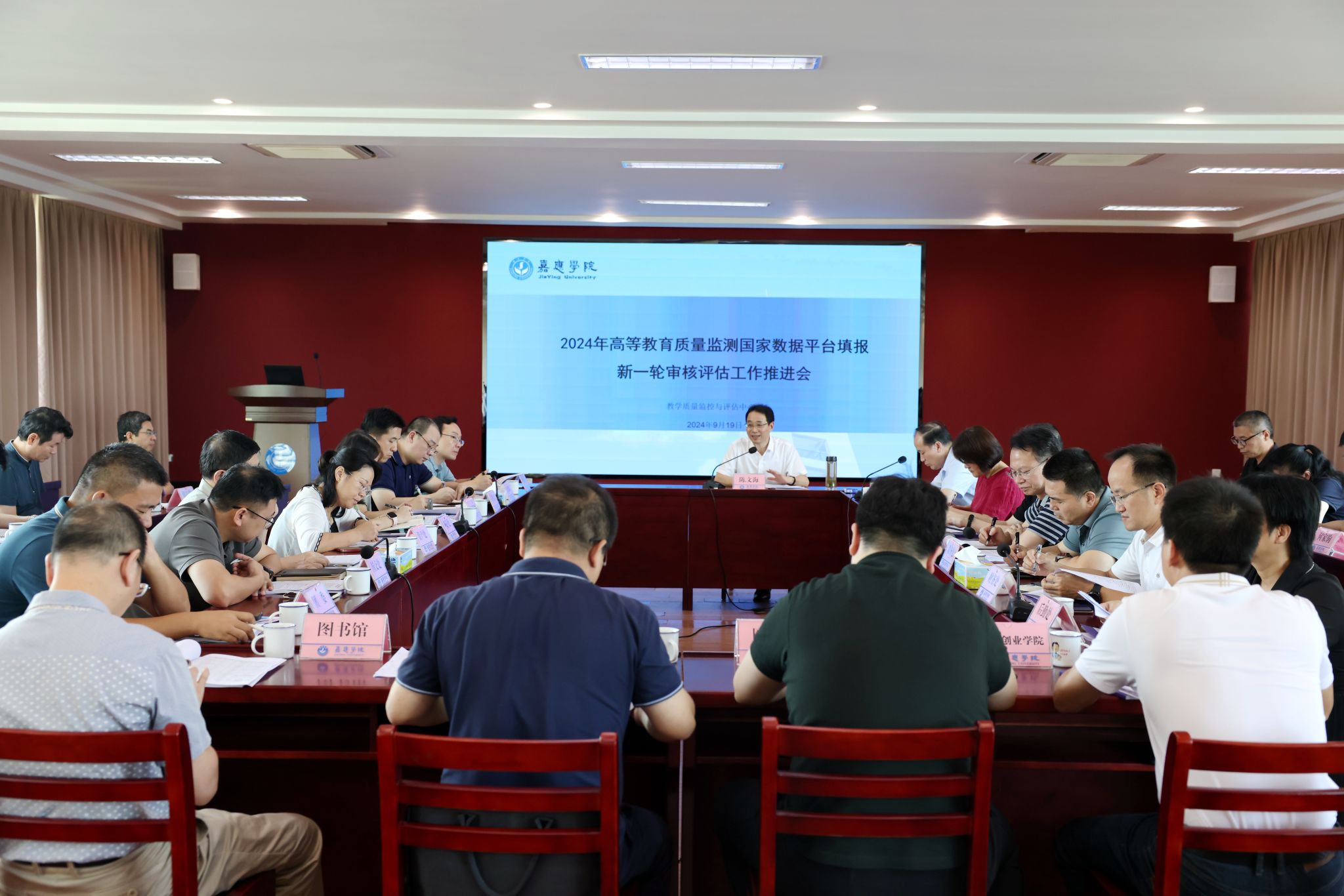 9月19日下午,我校在何侨生大楼526室召开2024年高等教育质量监测国家数据平台填报暨新一轮审核评估工作推进会,校长陈文海,相关职能部门与二级学院等单位负责人40余人参加了会议。会议由副校长袁铎主持。