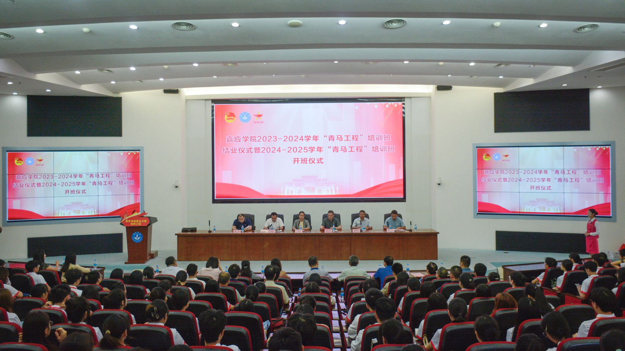 10月23日下午,我校在国际会议中心举行2023—2024学年“青马工程”培训班结业仪式暨2024—2025学年“青马工程”培训班开班仪式。学校副校长张丽霞,组织部、学生工作部、马克思主义学院、团委等单位负责人,各二级学院党委书记(副书记),校团委专职团干,各二级学院团委书记,青马学员代表共230人参加了会议。