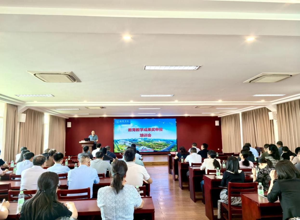 4月29日下午,学校在何侨生大楼526会议室举办教育教学成果奖申报专题培训会,邀请华南理工大学殷素红教授作专题培训。学校副校长袁铎,近两届校级教学成果奖申报主要完成人和申报人、教师代表、教务处科级以上干部等共70人参加培训。