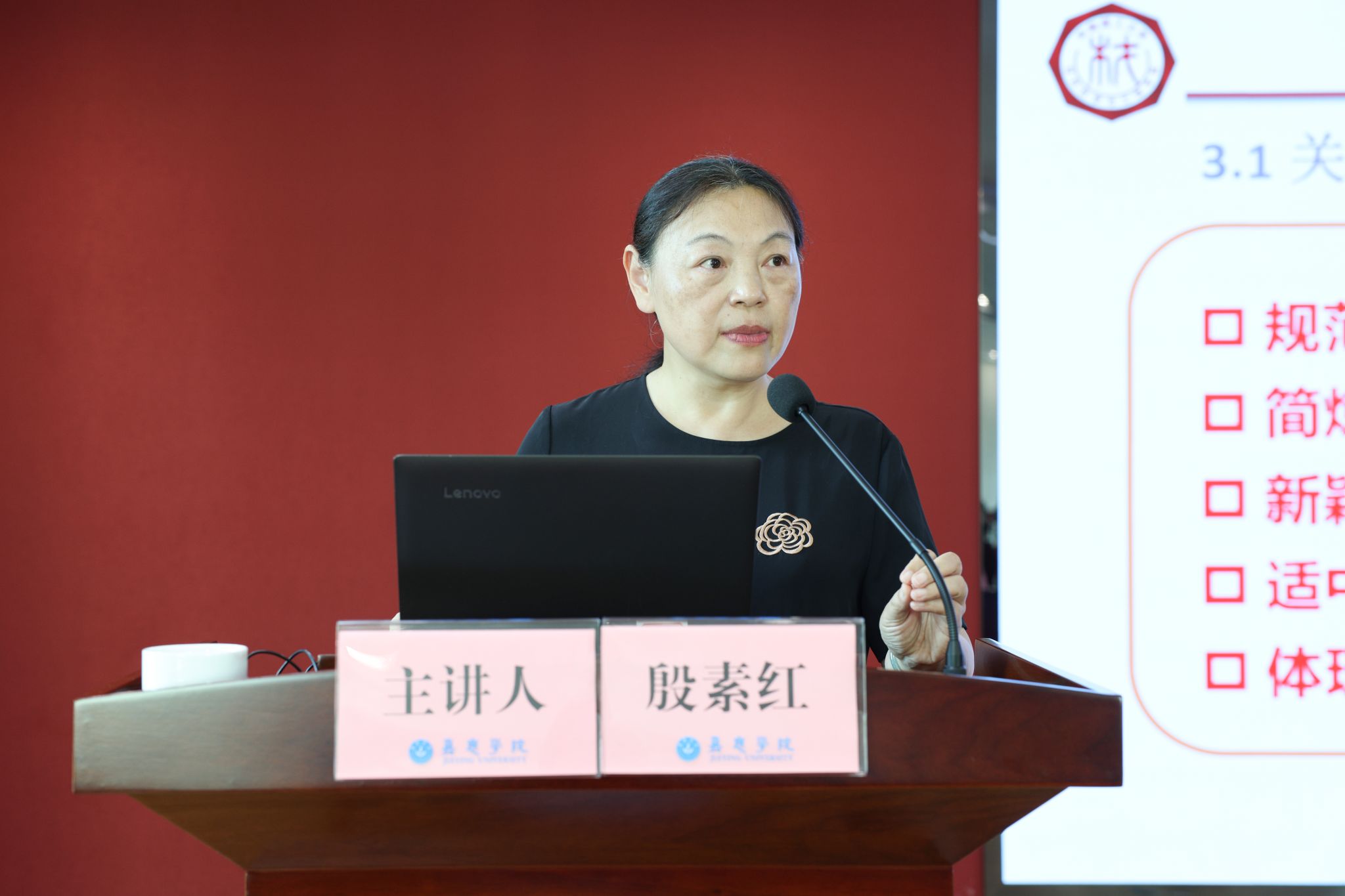 殷素红围绕教育教学成果奖申报策略,从成果奖的意义内涵、申报条件和技巧、申报书的凝练撰写和培育等方面进行指导。她指出,一要要坚持问题导向,以研究项目为载体,突出学校特色;二要优化项目团队,整合资源,持续推进项目的教学实践;三要加强项目成果的宣传推广,扩大研究成果影响力。