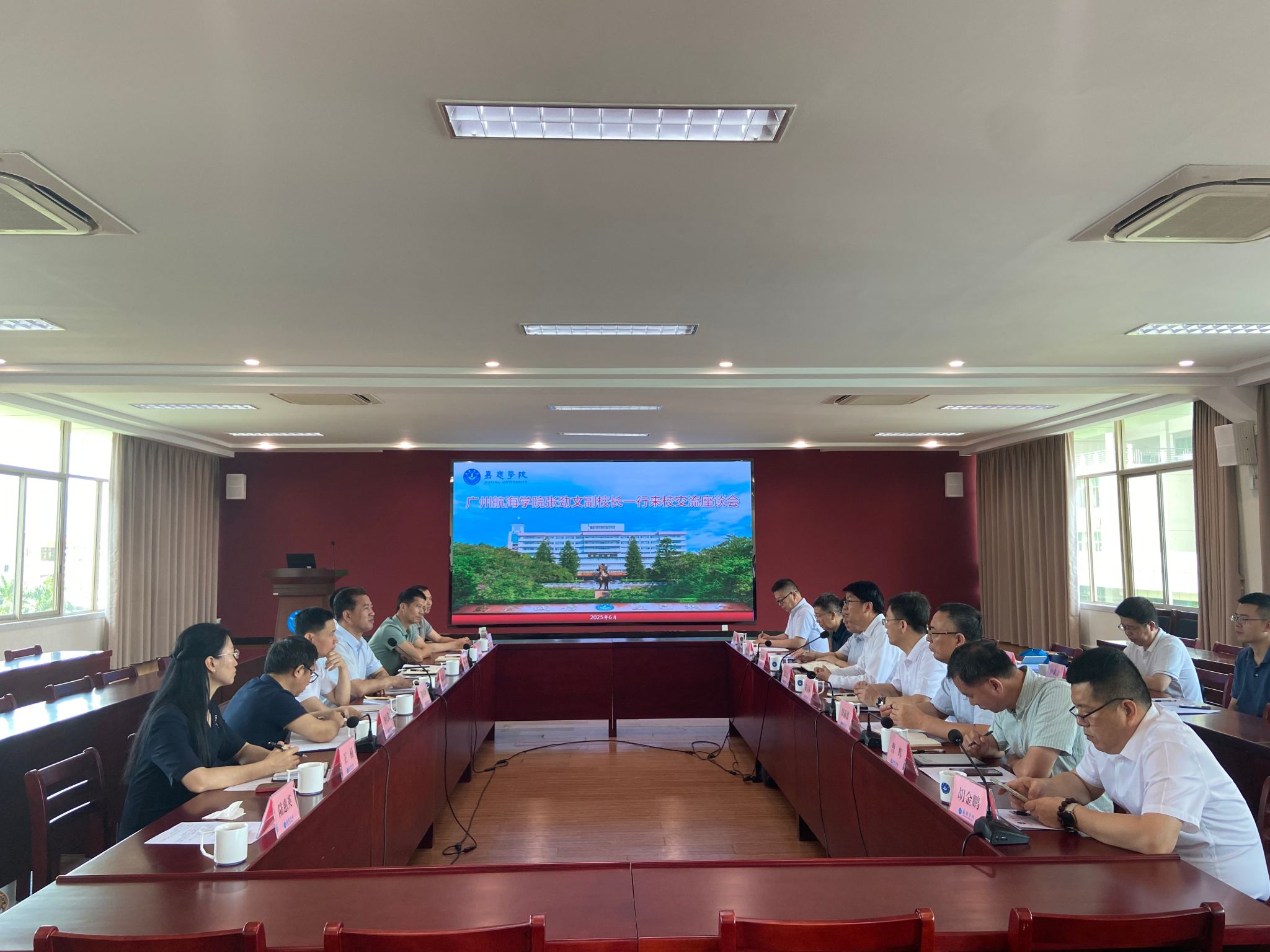 6月5日上午,广州航海学院副校长张劲文率队来校交流。学校副校长廖志成,科研处、数学学院、生命科学学院、物理与电子工程学院负责人参加交流。