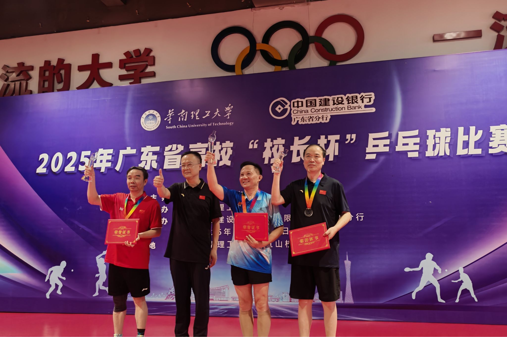 7月5日—6日,2025年广东省高校“校长杯”乒乓球比赛在华南理工大学成功举办。我校副校长罗嘉文、袁铎代表学校出战。经过激烈角逐,罗嘉文晋级男子A组16强,袁铎荣获男子A组季军,为学校争得荣誉。我校代表队员以精湛的球技和顽强的斗志,充分展现了奋勇争先的体育精神。