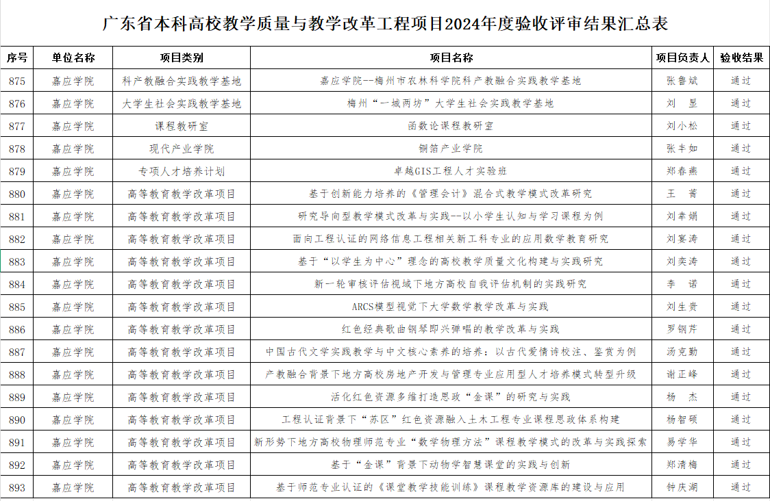 日前,广东省教育厅公布了2024年省级教学质量与教学改革工程项目验收结果,我校19个教学质量与教学改革工程项目全部通过省级验收,连续三年省级验收通过率为100%。