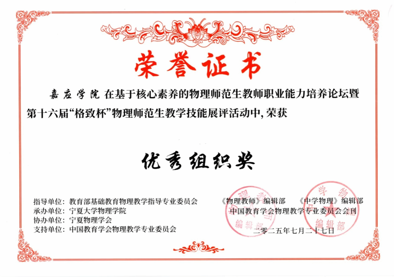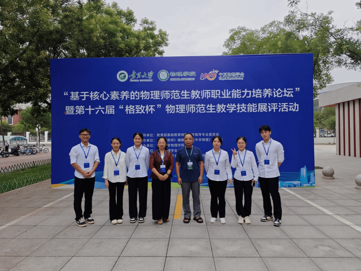 为备战此次展评活动, 我校统筹优质资源,在训练场地配置、教师指导等方面提供了全方位保障,有效提升了参赛学生的教学技能水平。基于核心素养的物理师范生教师职业能力培养论坛暨第十六届“格致杯”物理师范生教学技能展评活动由教育部基础教育物理教学指导专业委员会和中国教育学会物理教学专业指导委员会指导,《物理教师》编辑部、《中学物理》编辑部主办,宁夏大学承办,本届赛事吸引了来自北京师范大学、华东师范大学、华中师范大学、陕西师范大学等全国116所高校的1400余名师生参与,是目前国内最具影响力的物理师范生教学技能竞赛之一。
