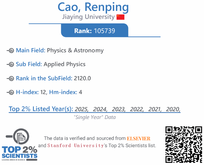 近日,美国斯坦福大学(Stanford University)联合爱思唯尔(Elsevier)数据库发布2025年《年度全球前2%顶尖科学家榜单》。我校化学与环境学院曹人平教授入选全球前2%顶尖科学家“年度影响力”榜单,这也是曹人平教授自2020年以来连续第六次入选该榜单。