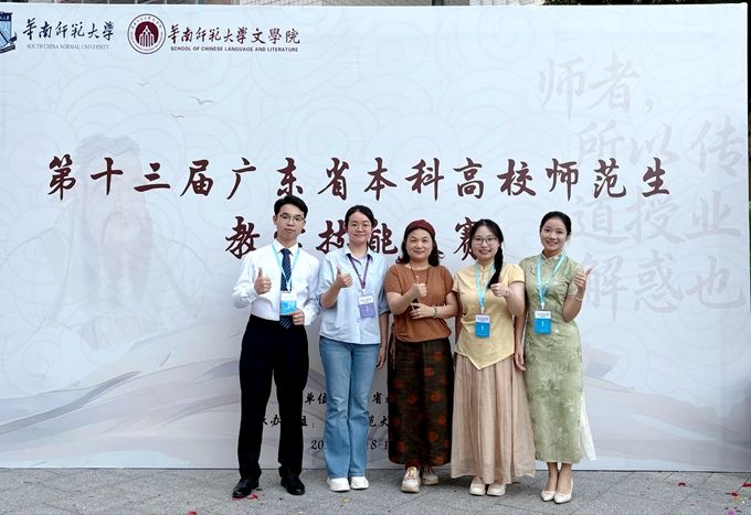 近日,由广东省教育厅主办、华南师范大学文学院承办的广东省本科高校师范生教学技能大赛(语文组)圆满落幕,我校文学院汉语言专业学子陈锦鹏荣获一等奖、彭彩娟和庄嘉锦荣获二等奖。