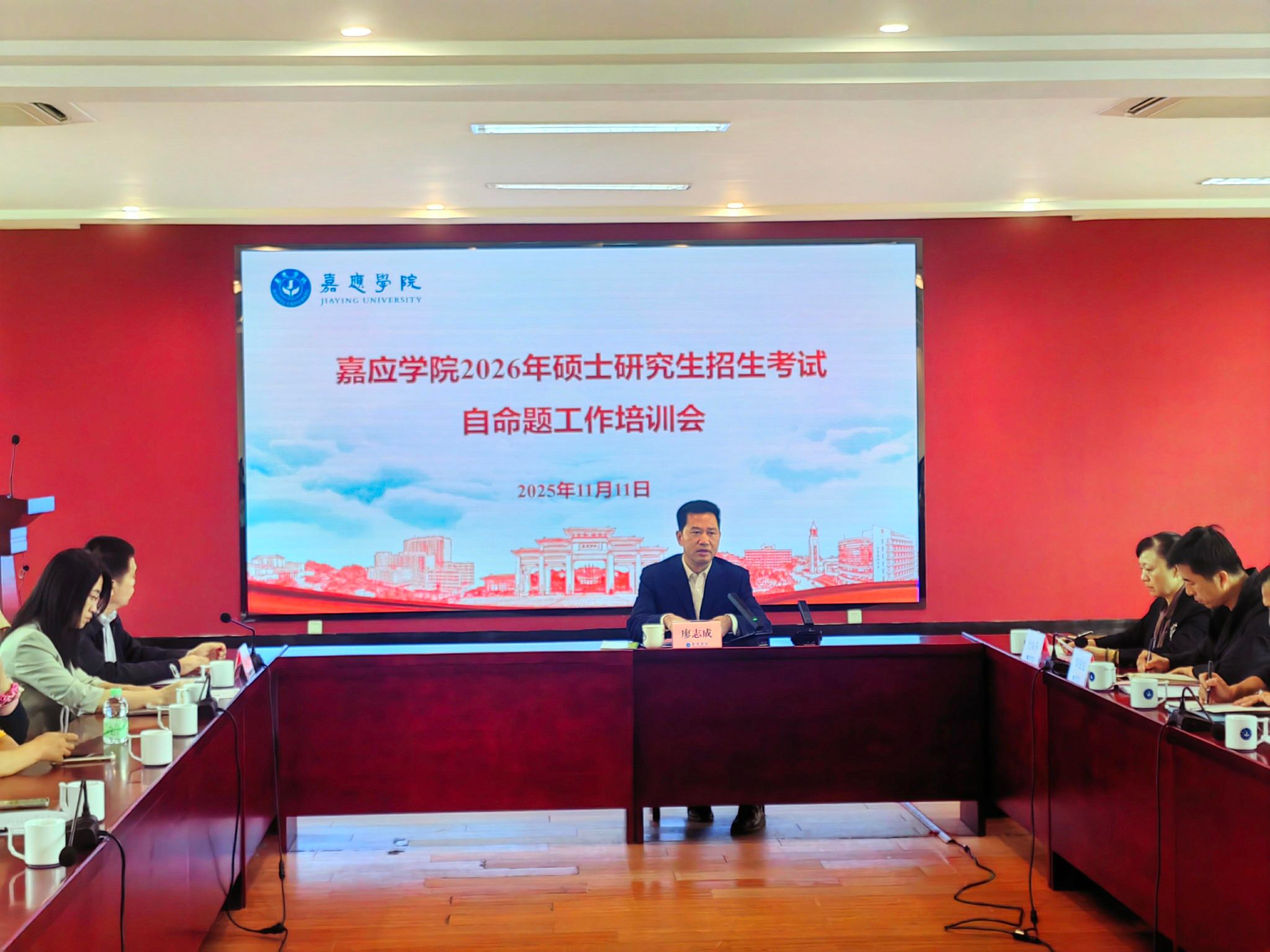 为加强硕士研究生招生考试自命题工作管理,提高自命题工作的安全性和规范性,11月11日下午,我校在何侨生大楼526会议室召开2026年硕士研究生招生考试自命题工作培训会。副校长廖志成主持会议并讲话。学校纪委、宣传部、科研与社会服务部相关负责人,研究生招生学院院长、分管研究生教育工作副院长、校内硕士研究生导师等70余人参加会议。