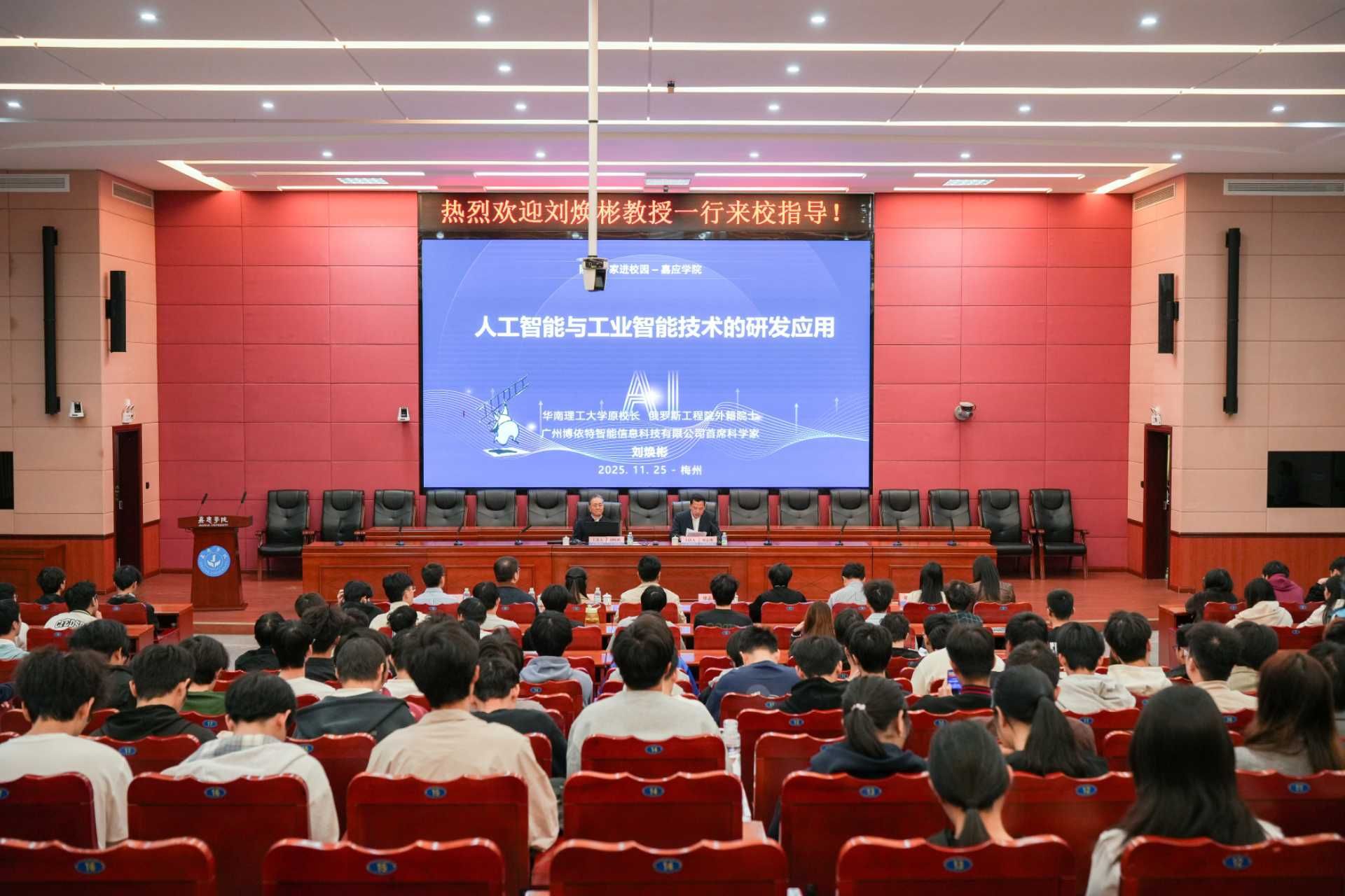 11月25日,华南理工大学原校长、俄罗斯工程院外籍院士刘焕彬教授应邀来校指导,我校党委书记陈文海、副校长廖志成热情接待了刘焕彬院士一行。刘焕彬院士在百年纪念大楼121报告厅作题为《人工智能与工业智能技术的研发应用》的学术报告,廖志成主持报告会,物理与电子工程学院、化学与环境学院和计算机学院300余名师生聆听了报告。