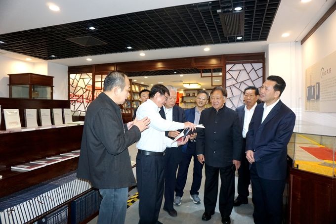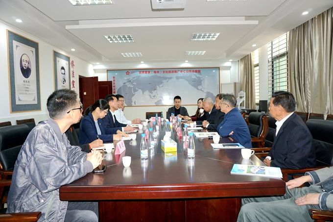 陈文海代表学校对管乔中董事长组团来校考察交流表示热烈欢迎,希望双方未来在客家文化研究、书院文化研究、生物医药等领域加强合作。廖志成陪同他们参观了客家文化展馆,并率领我校相关部门负责人与他们座谈交流。