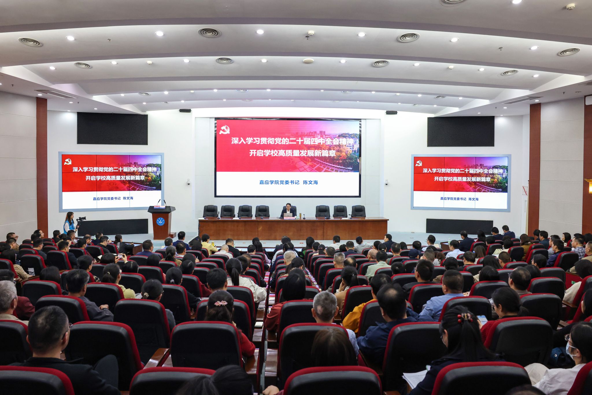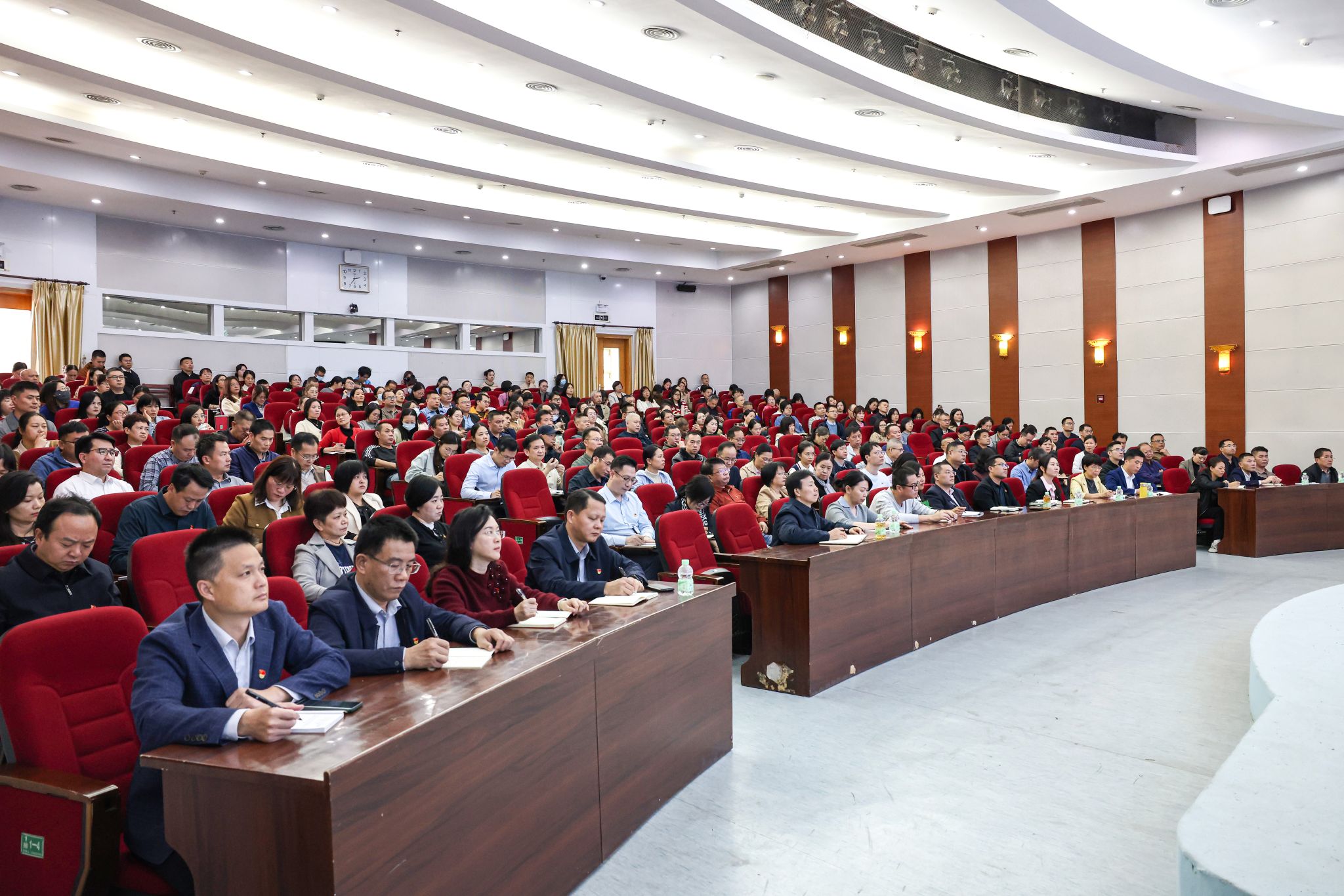 为深入学习贯彻党的二十届四中全会精神,推动全会精神在学校落地生根、开花结果,12月10日下午,学校党委书记陈文海教授在国际会议中心作题为《深入学习贯彻党的二十届四中全会精神,开启学校高质量发展新篇章》的专题宣讲报告。机关各党支部党员、干部,马克思主义学院、外国语学院党员、教师代表共260余人参加了学习。