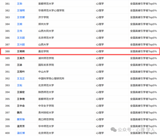 近日,2025年度全国心理学领域高被引学者名单正式发布。我校教育科学学院杨青松教授、王艳辉博士凭借其卓越的学术贡献和广泛的研究影响力,成功入选全国心理学领域高被引学者Top 5%。该名单由权威学术机构依据研究成果的被引用频次、学术影响力、创新性等多项核心指标进行综合评估与严格筛选,最终确定入选者。