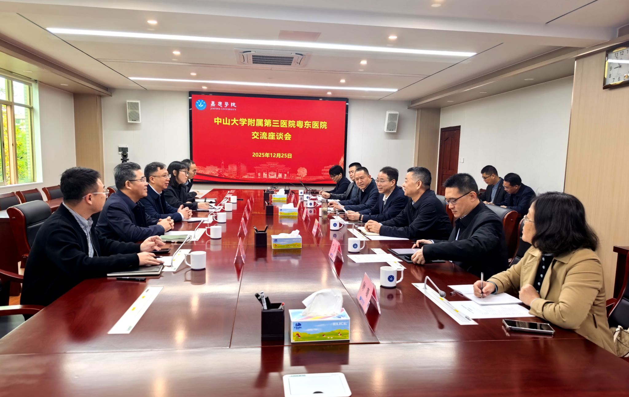 近日,我校与中山大学附属第三医院粤东医院在何侨生大楼515会议室举行交流座谈会。座谈会由学校党委书记陈文海主持,校长曹建忠,副校长陈建存,中山大学帮扶队队长兰宇,粤东医院党委书记兼常务副院长曹红,科研与社会服务部、医学院等相关职能部门负责人参加会议。