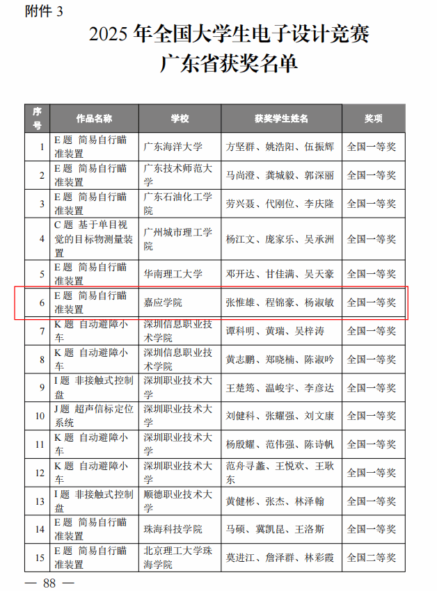 近日,广东省教育厅公布了2025 年全国大学生电子设计竞赛广东赛区获奖名单。我校物理与电子工程学院学子表现突出,首次荣获全国一等奖,取得历史性突破。