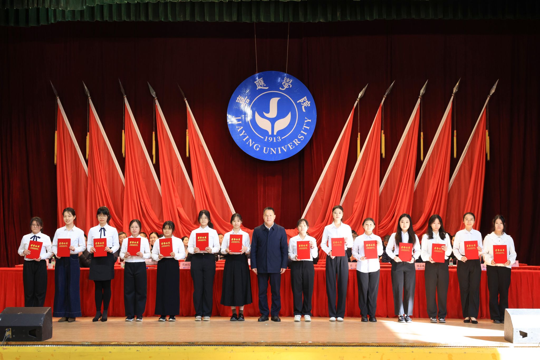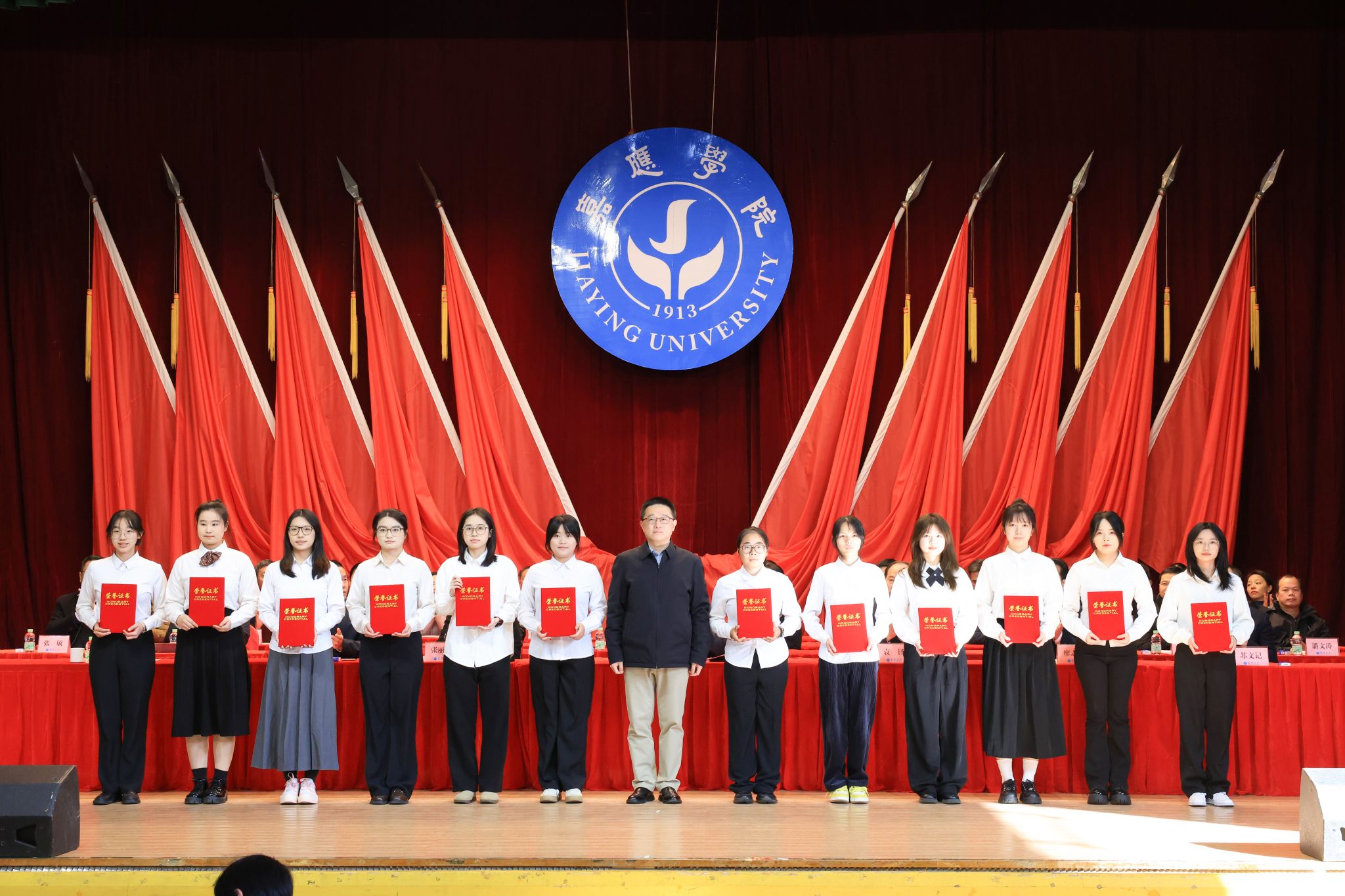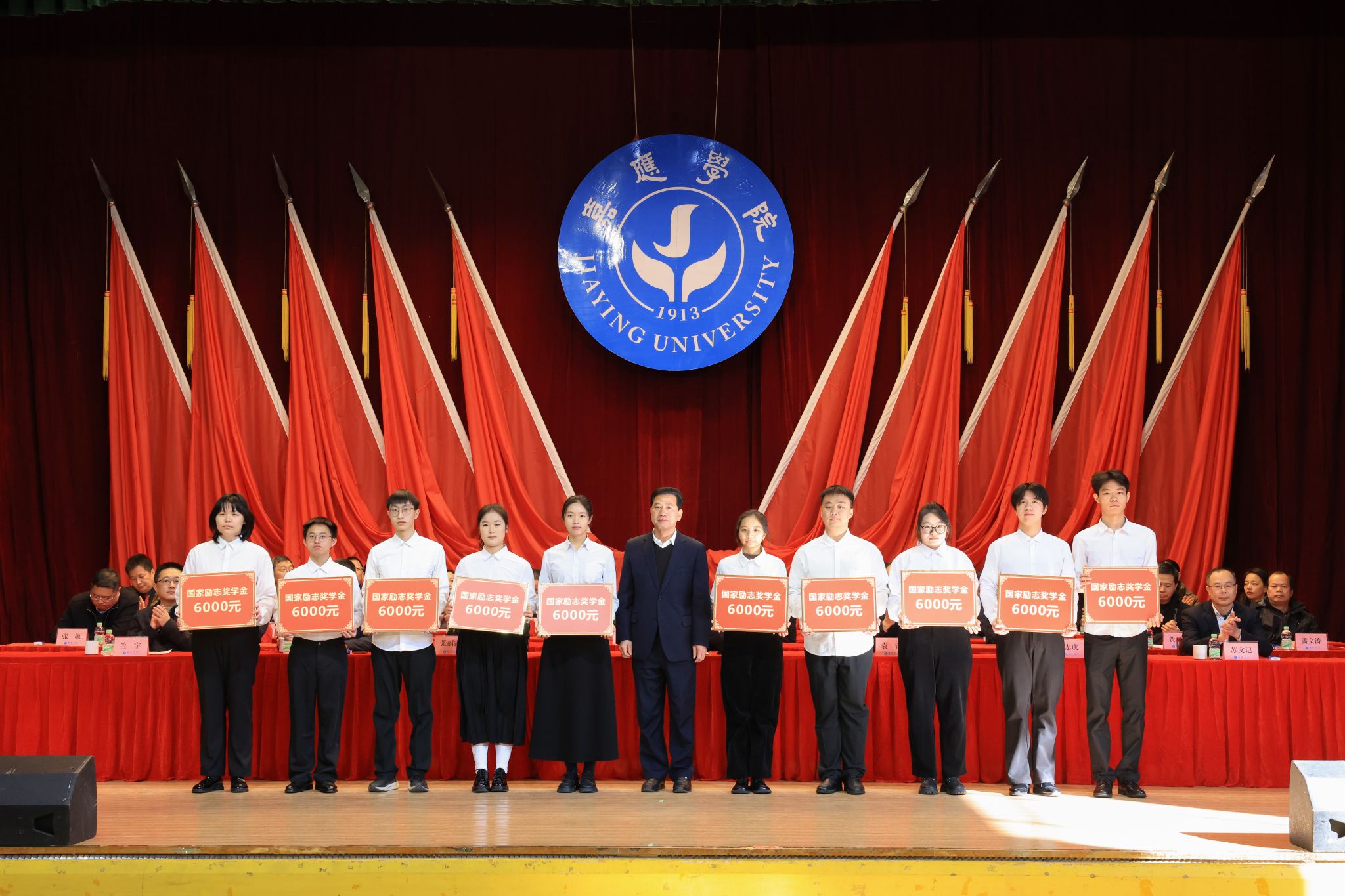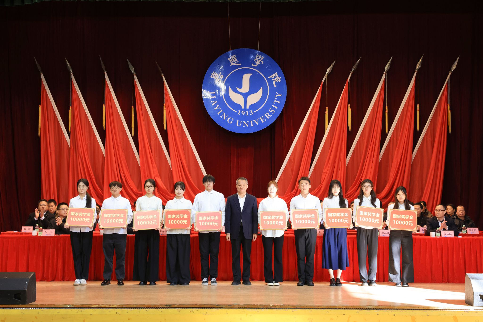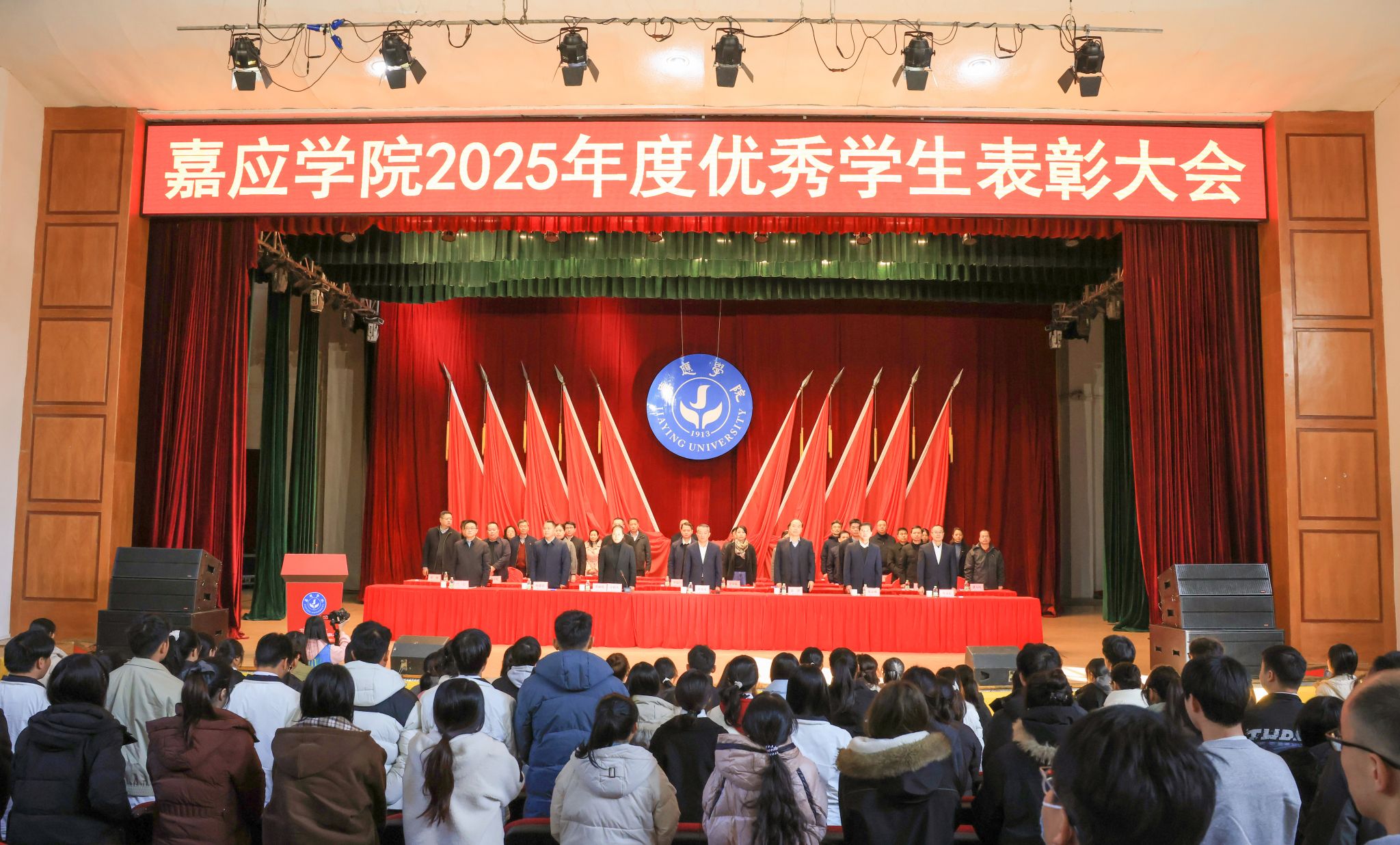 1月7日下午,我校在德龙会堂举行2025年度优秀学生表彰大会。学校副校长罗嘉文、袁铎、张丽霞、廖志成、陈建存,纪委书记苏文记,中山大学帮扶工作队队长兰宇,学生工作委员会全体成员,各二级学院党委副书记、辅导员、获表彰学生和学生代表共1000多人参加了大会。大会对过去一年在学术科研、学科竞赛、社会实践、志愿服务等方面表现突出的优秀学子进行了集中表彰,与会领导现场为获奖学生代表颁奖。罗嘉文总结讲话,袁铎宣读表彰决定,大会由张丽霞主持。