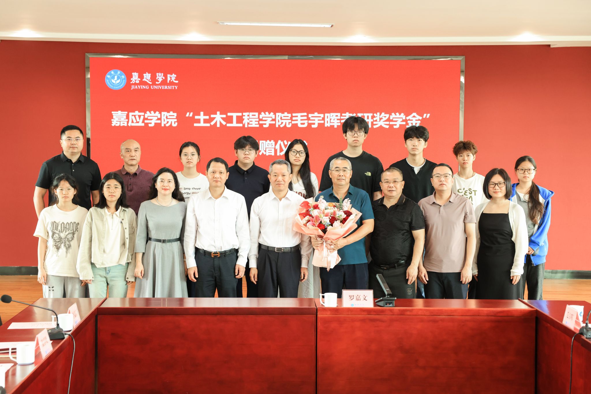 罗嘉文代表学校向毛宇晖老师致以衷心感谢。他指出,毛宇晖老师是学校第一位捐赠设立奖学金的老师;他扎根教学一线,秉持立德树人初心,生动诠释了“学高为师,身正为范”的深刻内涵。此次捐赠既是物质支持,更是精神引领,彰显了人民教师的大爱情怀,为全校师生上了一堂生动的思政课。他要求相关部门管好、用好善款,确保其真正用于奖励优秀学子、推动学风建设;同时勉励同学们将这份关爱转化为奋进的动力,以优异成绩回报师恩,让大爱精神薪火相传。