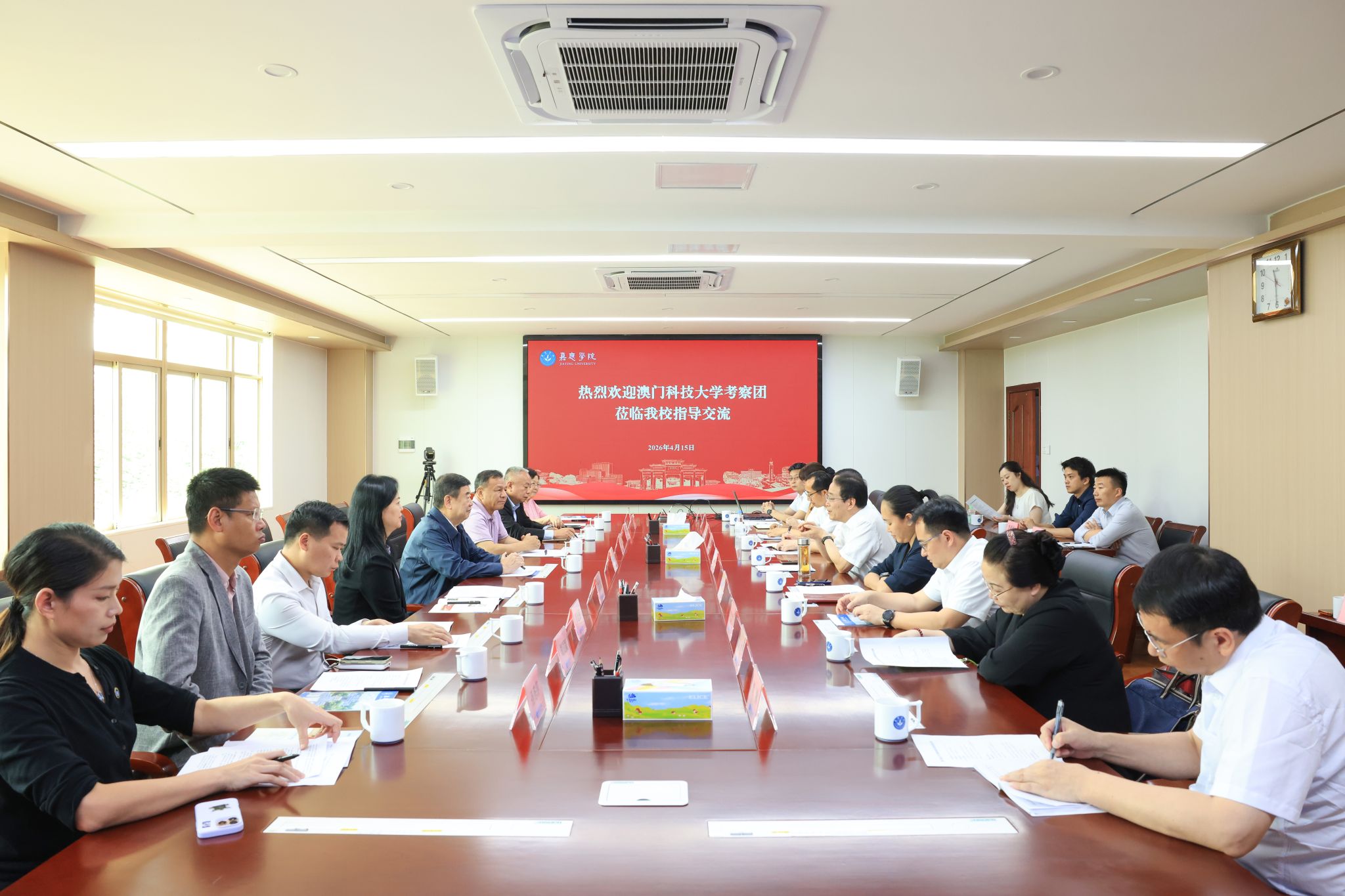 4月15日上午,澳门科技大学校董会主席廖泽云博士,全国政协委员、澳门科技大学校董会副主席兼秘书长陈季敏博士,梅州市委统战部常务副部长王忠豪等一行9人莅临我校访问交流。学校党委书记陈文海,副校长张丽霞,党政办公室、科研与社会服务部、港澳台和外事工作部、法学与公共事务学院、历史文化学院、客家文化研究院、学报编辑部等相关负责人参加座谈会。