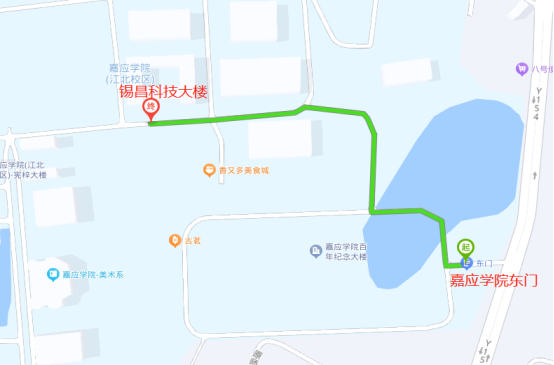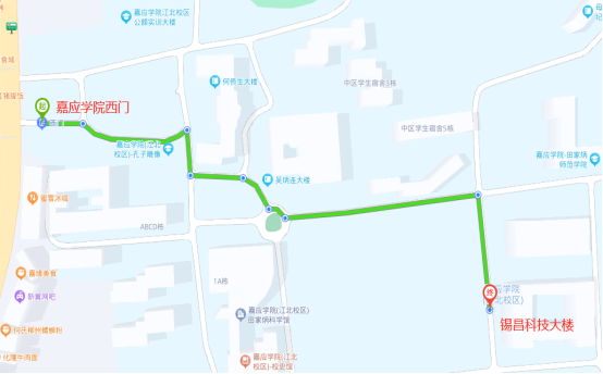 (二)考生应至少提前1小时到达嘉应学院江北校区(梅州市梅江区梅松路100号),从西门或东门步行进入校内(考生车辆不得入内,南门和北门不面向考生开放),考试地点位于锡昌科技大楼,各校门至锡昌科技大楼步行(约5分钟)路线详见下图。