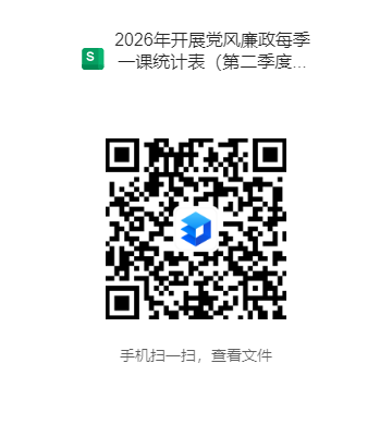 4.加强考核评价。“党风廉政每季一课”开展情况将作为各二级党组织履行党风廉政建设责任的观测点,纳入年终党建考核体系。每季一课开展情况不再提交纸质材料,扫描下面二维码填报即可。