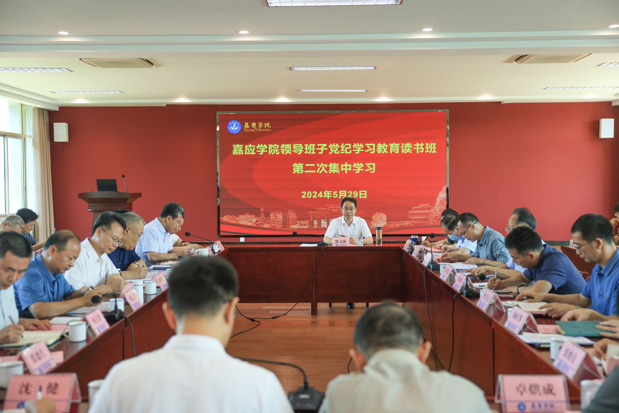 5月29日上午,我校在何侨生大楼526会议室举行领导班子党纪学习教育读书班第二次集中学习。学校党委副书记、校长陈文海,党委副书记罗任权,副校长罗嘉文、袁铎、廖志成,纪委书记、监察专员苏文记,中山大学帮扶工作队队长兰宇,各二级党组织书记、各党政群团教辅部门主要负责人参加读书班。苏文记主持会议。