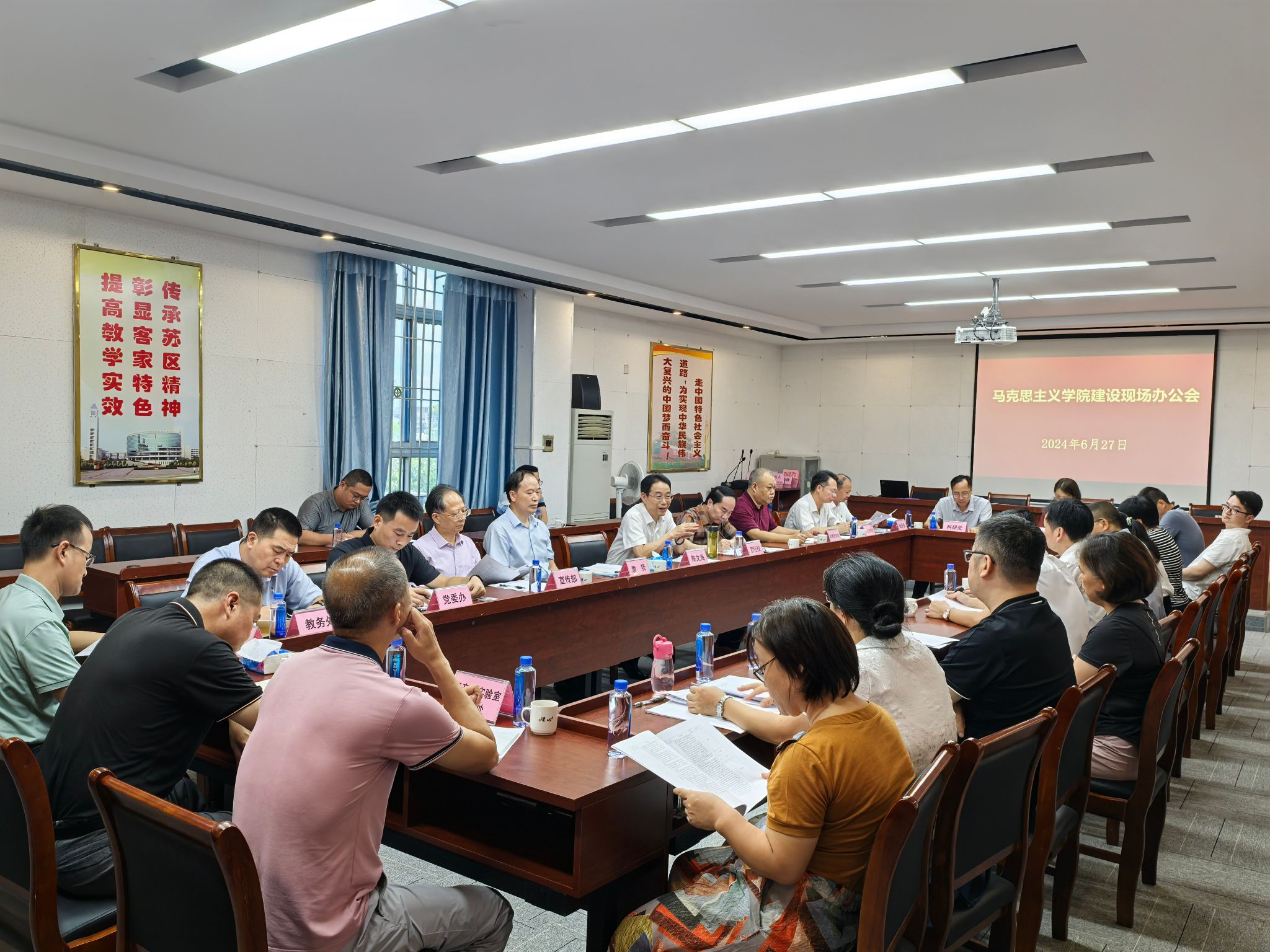 为进一步建强建好马克思主义学院,不断提升马克思主义学院建设的科学化、规范化、现代化水平,6月27日下午,我校在萧畹香纪念楼303会议室召开马克思主义学院建设现场办公会,学校党委副书记、校长陈文海,党委副书记罗任权,副校长袁铎,党委办公室、组织部、宣传部、发展规划处、人力资源处、教务处、科研处、财务处、资产与实验室管理处、信息网络中心、教学质量监控与评估中心等部门负责人,以及马克思主义学院班子成员、学科带头人、教研室主任等参加。