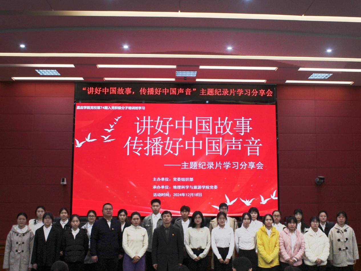 为深入学习贯彻习近平文化思想,教育引导青年学生厚植爱国主义情怀,12月18日下午,我校在文科楼121室举办“讲好中国故事,传播好中国声音”主题纪录片学习分享会。学校党委组织部、地理科学与旅游学院相关教师和第74期入党积极分子培训班学员参加了活动。