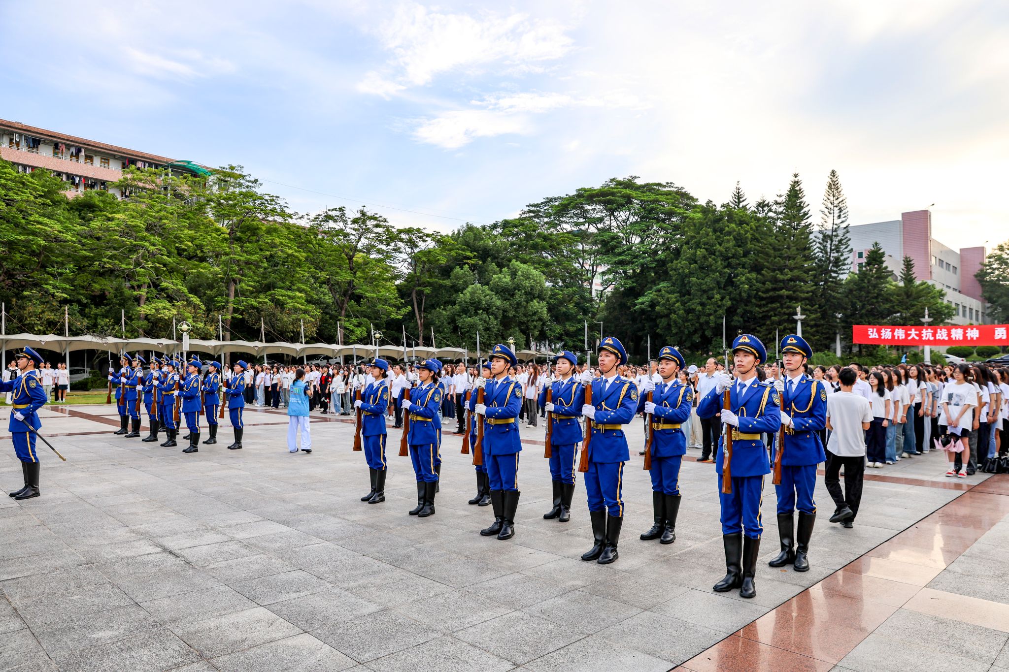 今年正值纪念中国人民抗日战争暨世界反法西斯战争胜利80周年,80年来,在中国共产党的坚强领导下,中华民族实现了从站起来、富起来到强起来的伟大飞跃,创造了举世瞩目的发展成就。新学年伊始,在这个具有特殊历史意义的时刻举行升旗仪式,旨在缅怀革命先烈,传承红色基因,凝聚奋进力量,引导广大师生深刻感悟伟大抗战精神的内涵,为强国建设、民族复兴伟业贡献力量。