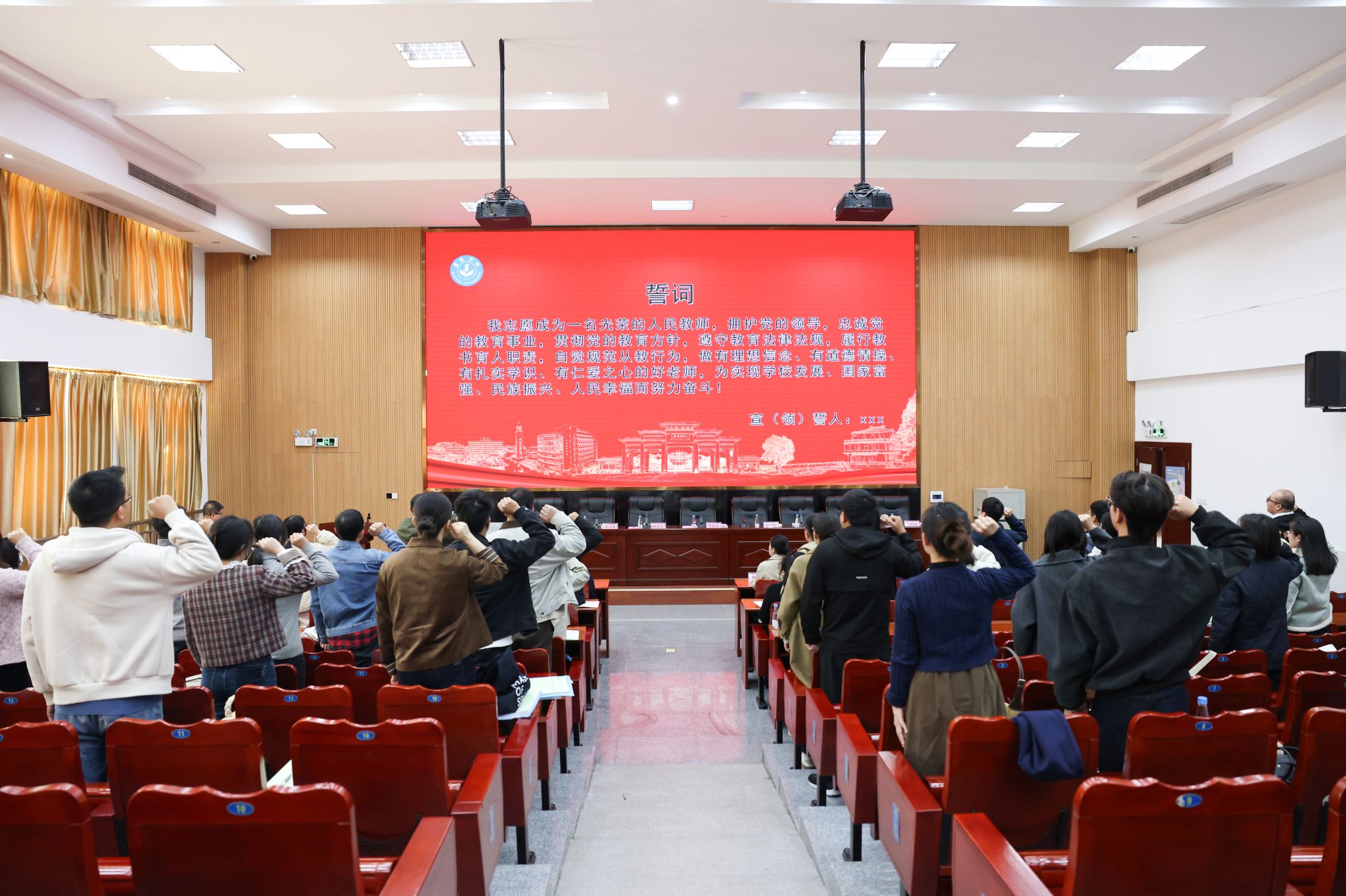 开班仪式上,全体新教师庄严宣誓,铿锵誓言彰显了投身教育事业的坚定信念与责任担当。相关部门负责人围绕职能分工、政策支持与职业发展路径作了介绍,鼓励新教师尽快融入集体、明晰方向、砥砺前行,共同擘画嘉应学院高质量发展新篇章。