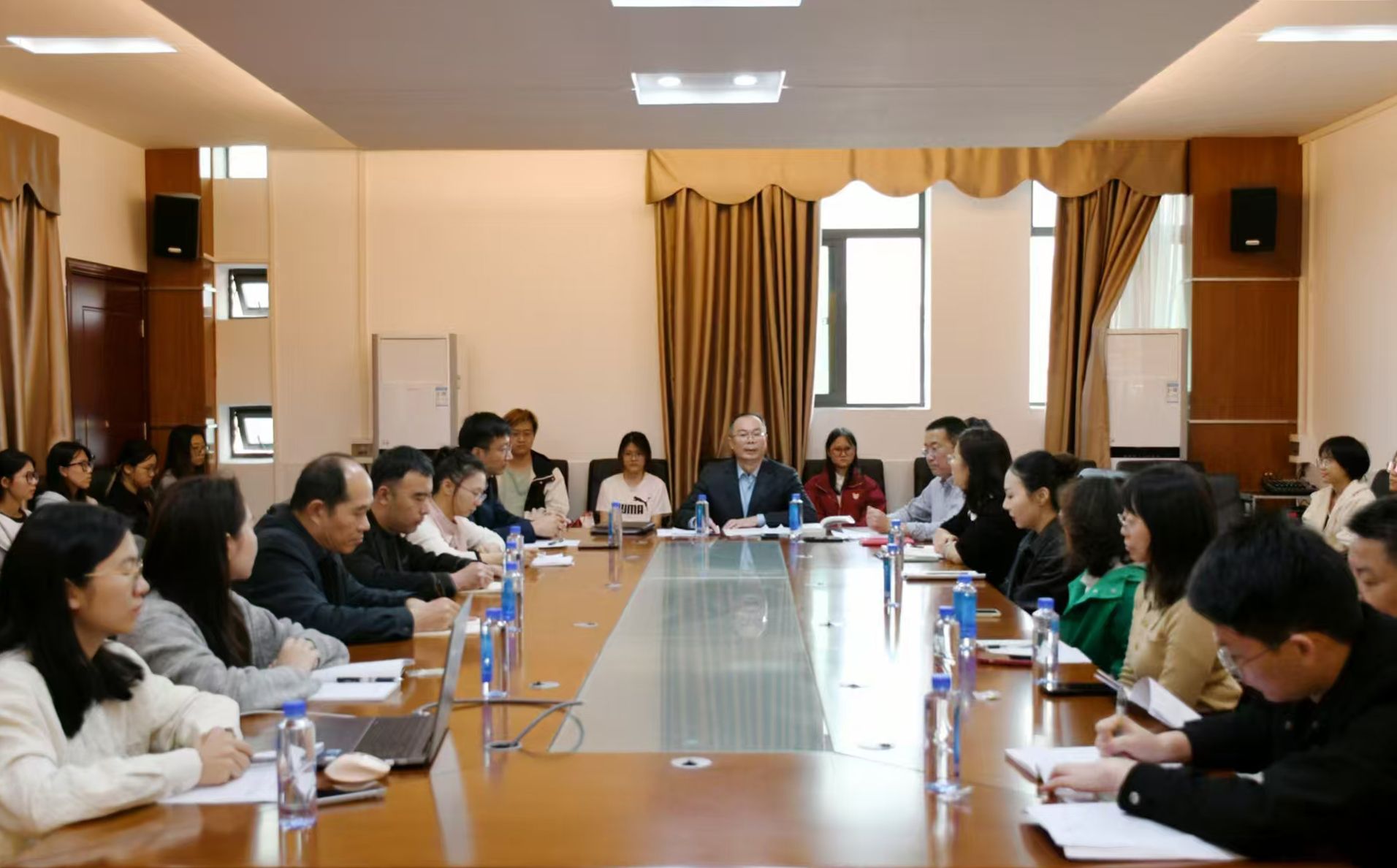 针对文学院发展实际,苏文记提出具体实践要求:要把握教育、科技、人才一体推进战略,以党建引领学科建设与人才培养;发挥人文学科优势,优化专业结构,深化产教融合,培养兼具专业功底、人文素养和社会责任感的高素质人才;推进治理体系现代化,强化政治监督,筑牢廉洁防线;创新课程思政方法,将价值引领有机融入教学全过程;主动运用数字技术赋能教育教学、科研创新和人才培养,全面提升办学质量与治理效能。