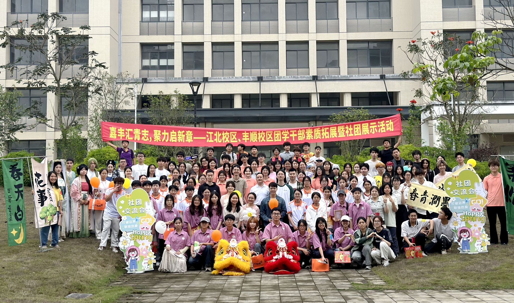 为全面落实立德树人根本任务,践行“健康第一”教育理念,进一步加强校区联动,丰富校园文化生活,4月8日下午,校团委与丰顺校区党工委在丰顺校区联合组织开展“嘉丰汇青志,聚力启新章”为主题的团学干部素质拓展暨社团展示活动。