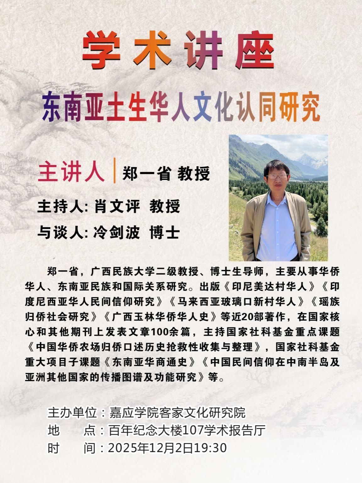 一、学术讲座主题:《东南亚土生华人认同研究》
