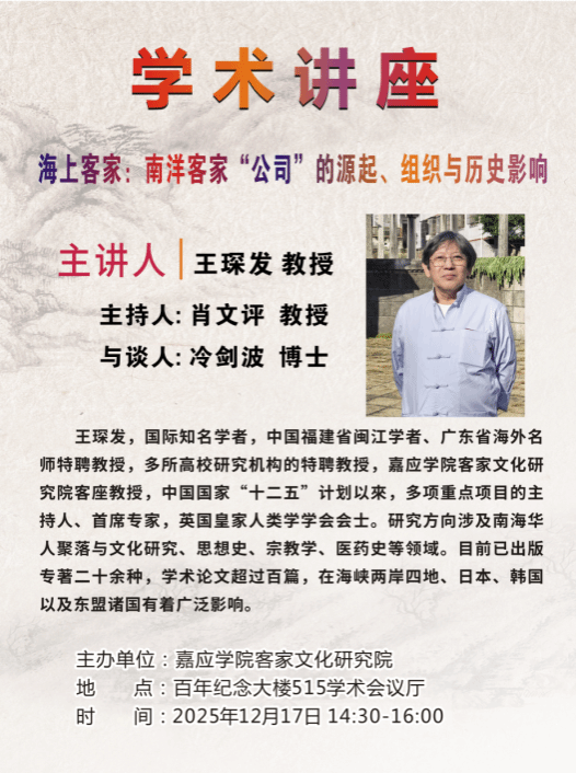 一、学术讲座主题:《海上客家:南洋客家“公司”的源起、组织与历史影响》