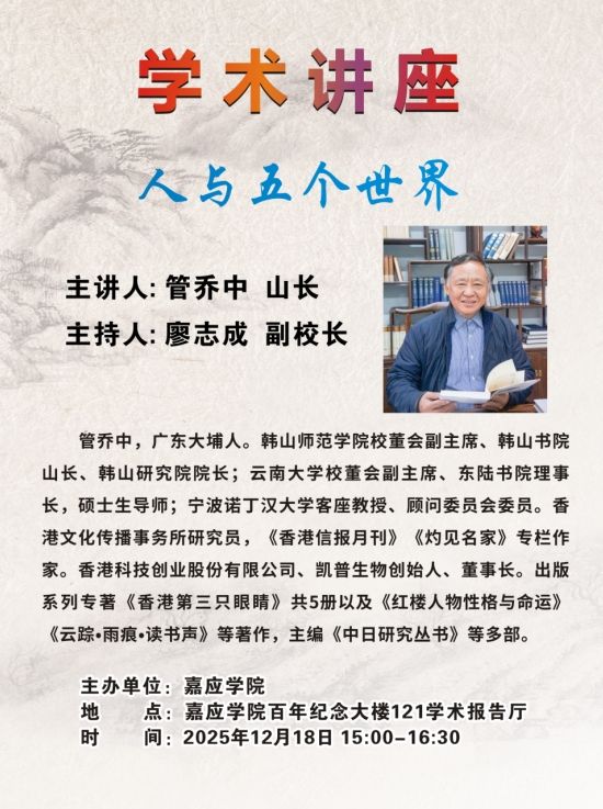 三、学术讲座时间:2025年12月18日(星期四)下午15:00--16:30