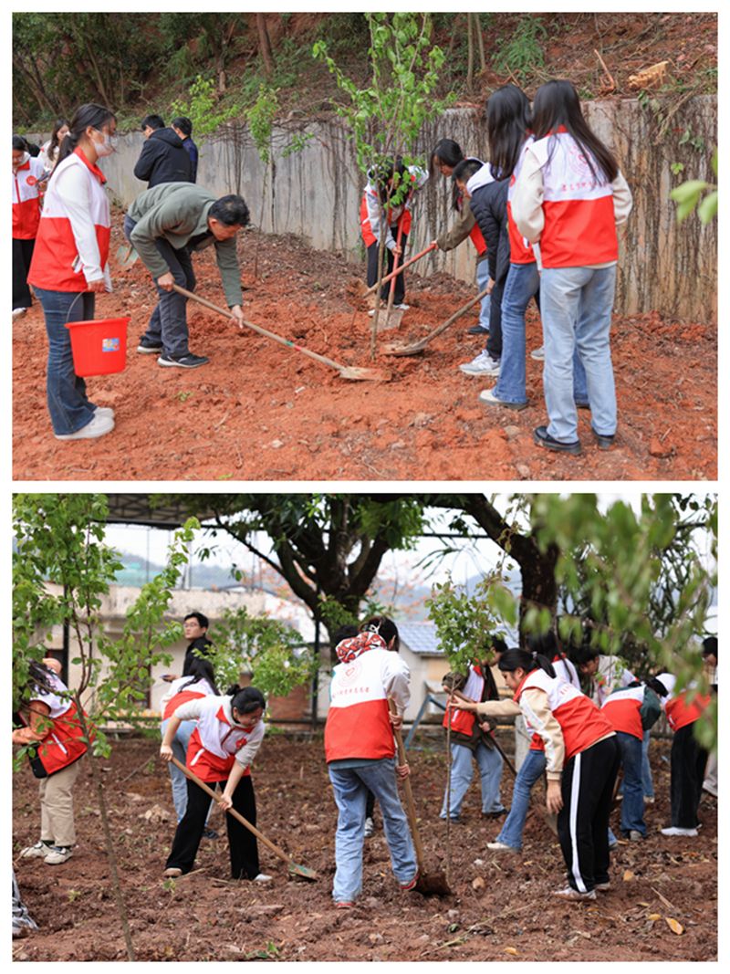 师生们积极响应国家关于生态文明建设的号召,做绿色文明的传播者、践行者、守护者。植树现场,师生们热情高涨,挥锹铲土、扶树填土、提水浇灌,大家相互配合,分工有序、干劲十足,气氛热烈。新种植的一棵棵樱花树苗在霏霏春雨中焕发出无限生机,为绿意盎然的校园增添了新的希望。师生们种植了200多棵樱花树,并在植树现场签订了绿美生态建设承诺书,以实际行动贯彻落实习近平生态文明思想,深入践行“绿水青山就是金山银山”理念,投身绿美梅州、绿美广东生态建设。
