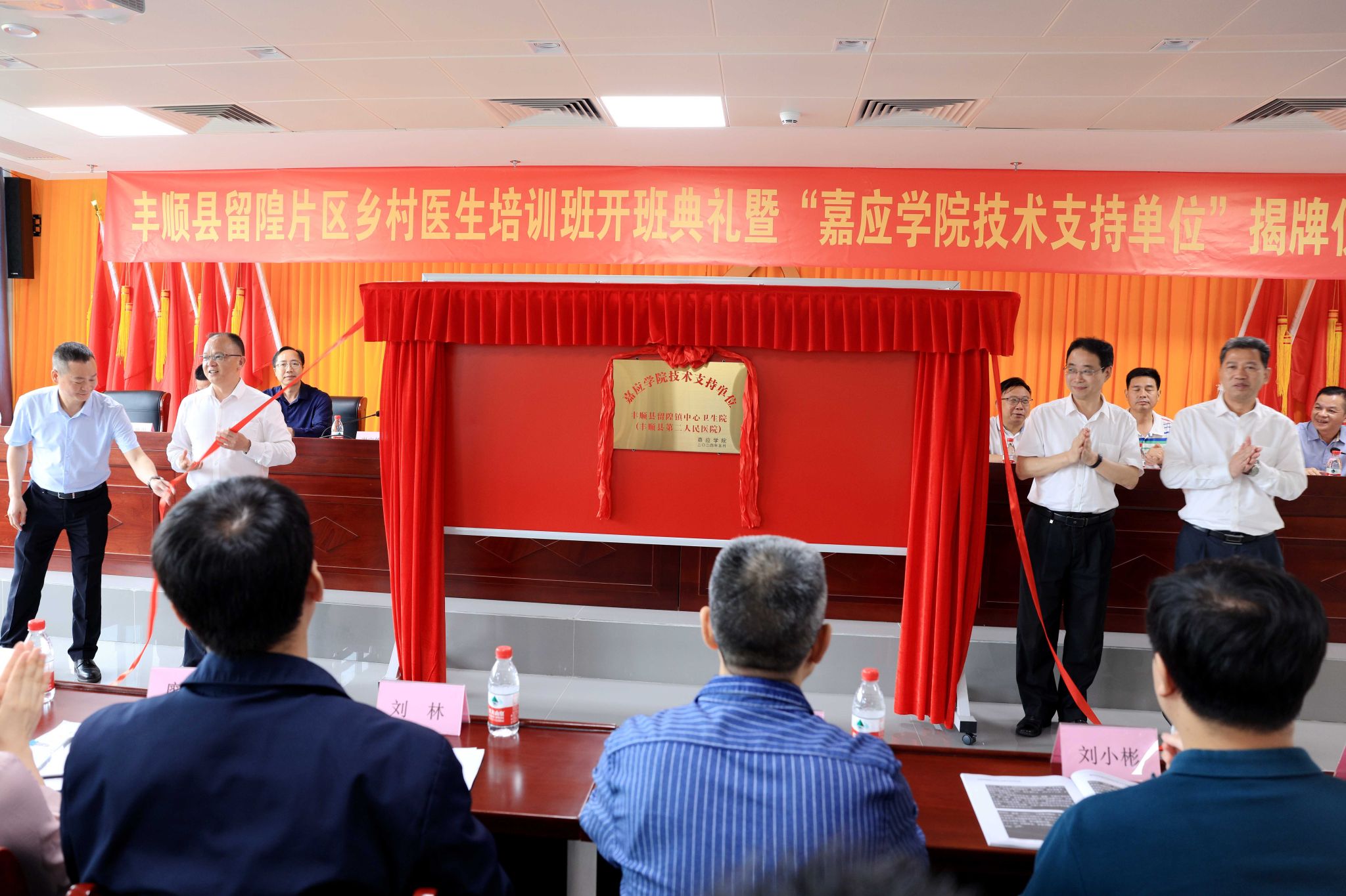 陈文海校长一行到丰顺县第二人民医院出席乡村医生培训班开班典礼暨“嘉应学院技术支持单位”揭牌仪式。他指出,乡村医生是农村基层医疗卫生服务的重要力量,承担着保障农民健康、预防疾病的重要职责。学校将充分发挥医学院学科专业优势,扎实推进乡村医生培训工作。他强调,一要突出实效。充分发挥学校在医学教育、科研和临床方面的优势,立足地方实际需求,为乡村医生培训班提供全方位的支持和服务。二要深化合作。选派骨干力量参与技术支持工作,提升医院的综合服务水平。三要强化保障。按照“县域所需、高校所能”原则,持续推进人才下沉、科技下沉、服务下沉,推进“双百行动”项目落地。同时,希望丰顺县和留隍镇在政策、资源、资金、条件等方面加大保障力度,共同推动合作项目落实落细,实现校地融合发展。