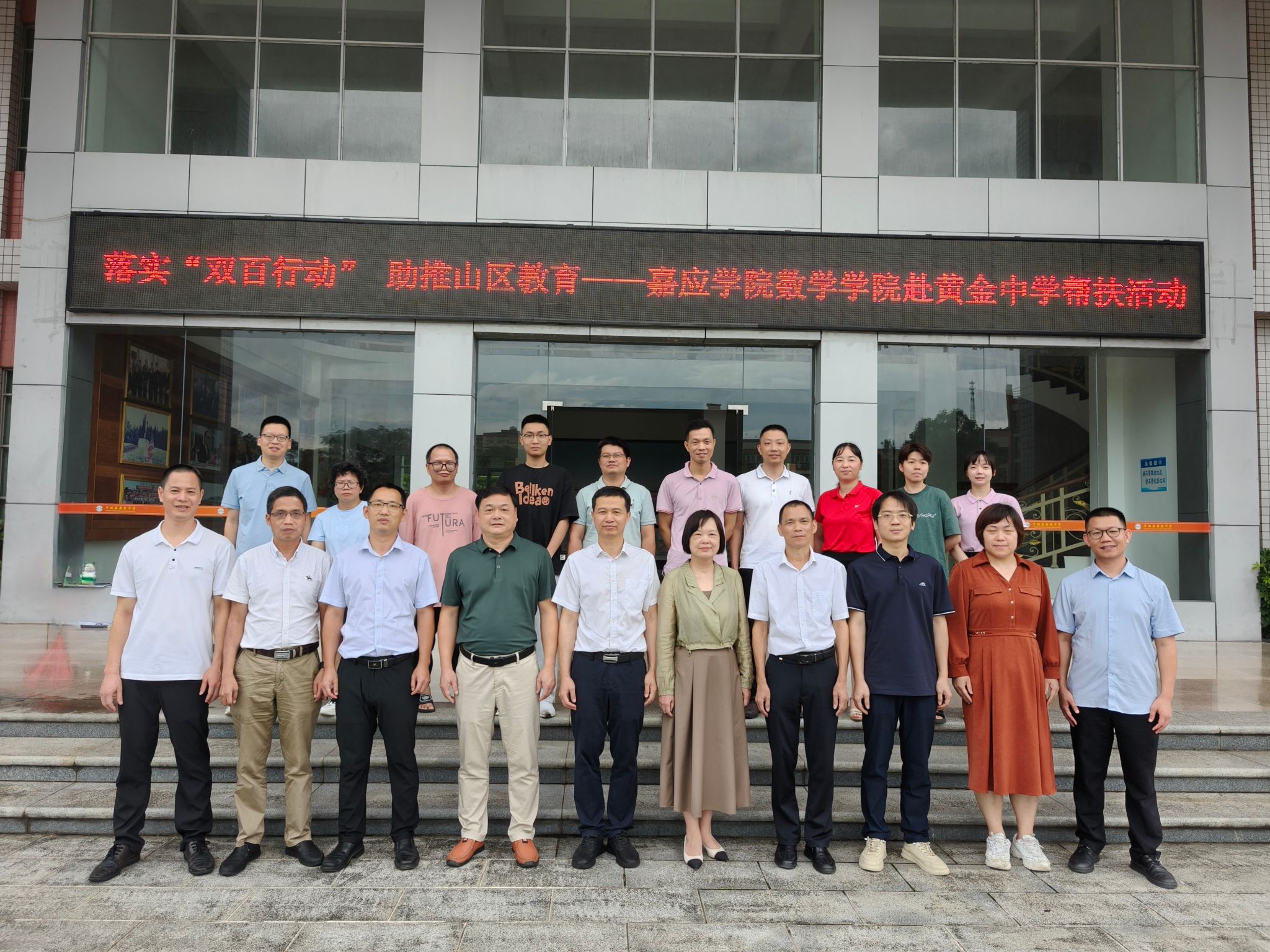 为进一步推进“双百行动”工作落地生效,助力山区数学基础教育高质量发展,6月19日下午,我校数学学院党政班子成员、学科带头人、师范生技能教研室主任等前往丰顺县黄金镇黄金中学开展教研活动,黄金镇政府、黄金中学负责人、全体中层以上干部及数学教师和梅州市教师发展中心中学数学教研员刘迪生老师参加了活动。