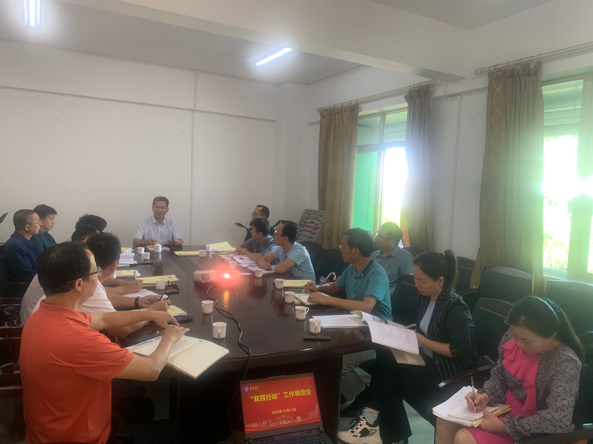 10月31日上午,我校在何侨生大楼402室召开“双百行动”工作调度会,学校副校长廖志成,“双百行动”指挥部办公室、党委办公室校长办公室、组织部、发展规划处相关负责人,部分对接丰顺县镇(场)的二级单位“双百行动”工作队相关负责人等20多人参加会议。