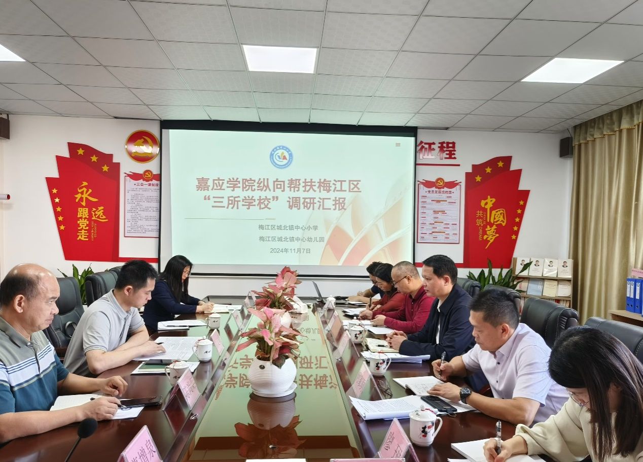 为贯彻落实《广东省“百县千镇万村高质量发展工程”教育行动方案(2023—2027 年)》,深入实施《广东省师范(教师教育)院校纵向帮扶欠发达地区“三所学校”和县中质量提升工作方案(2024-2027年)》,加快推进梅江区“三所学校”纵向帮扶工作,11月7日,外国语学院党委书记李益昌、执行院长何家驹率“纵向帮扶”工作队成员一行6人赴梅江区城北镇开展专题调研。