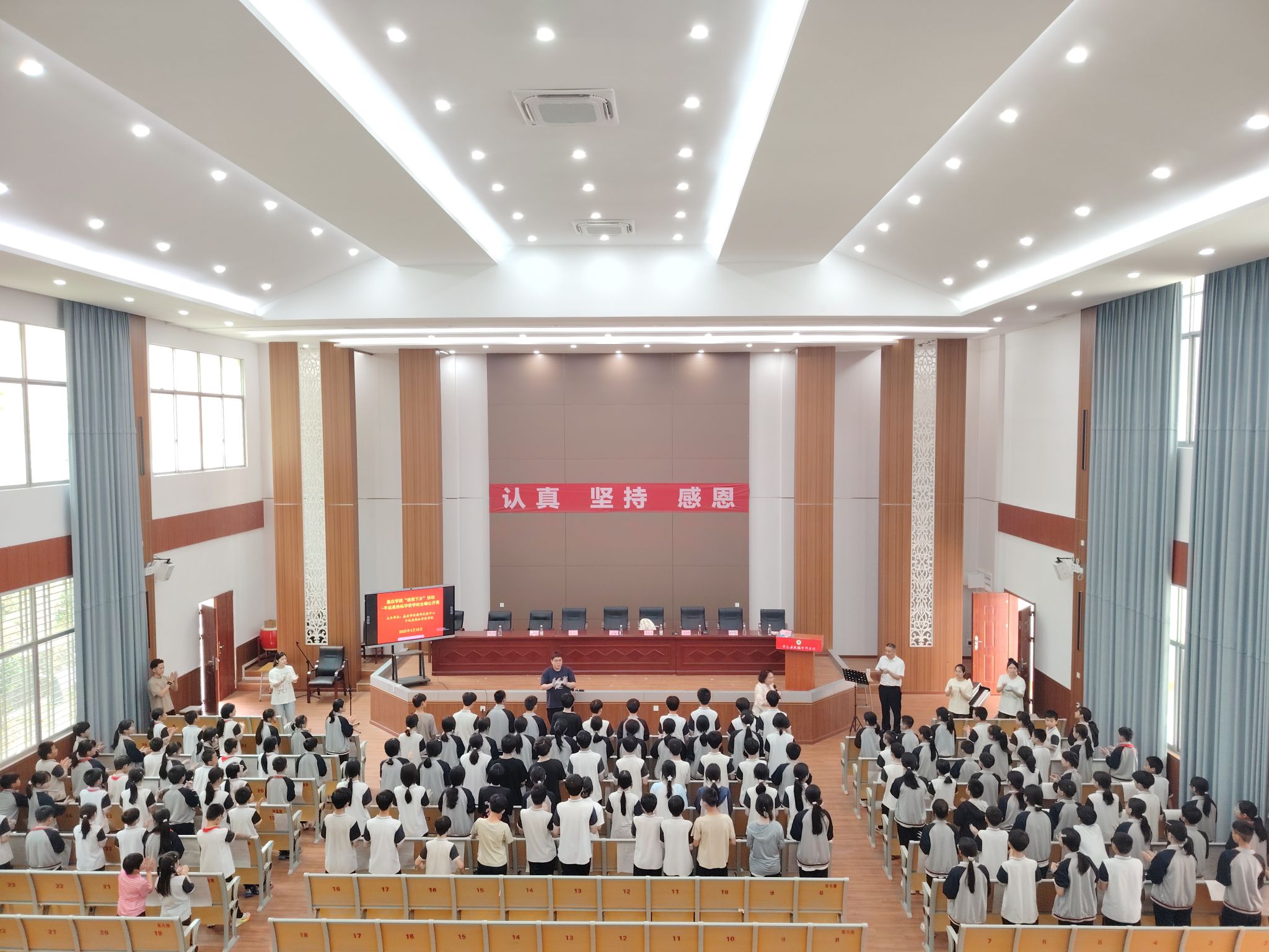 音乐与舞蹈学院张秋萍老师为平远县热柘华侨学校师生带来以《你笑起来真好看》为内容的合唱公开课,通过三组递进式热身活动引导学生激活身体及进行连贯练习,增强学生的节奏感与协调性,有效提升学生参与积极性,结合《拉德斯基进行曲》开展呼吸练习及和声探索游戏环节,让学生在声部互动中感受多声部碰撞的和声效果,培养即兴创编新旋律的音乐创造力。