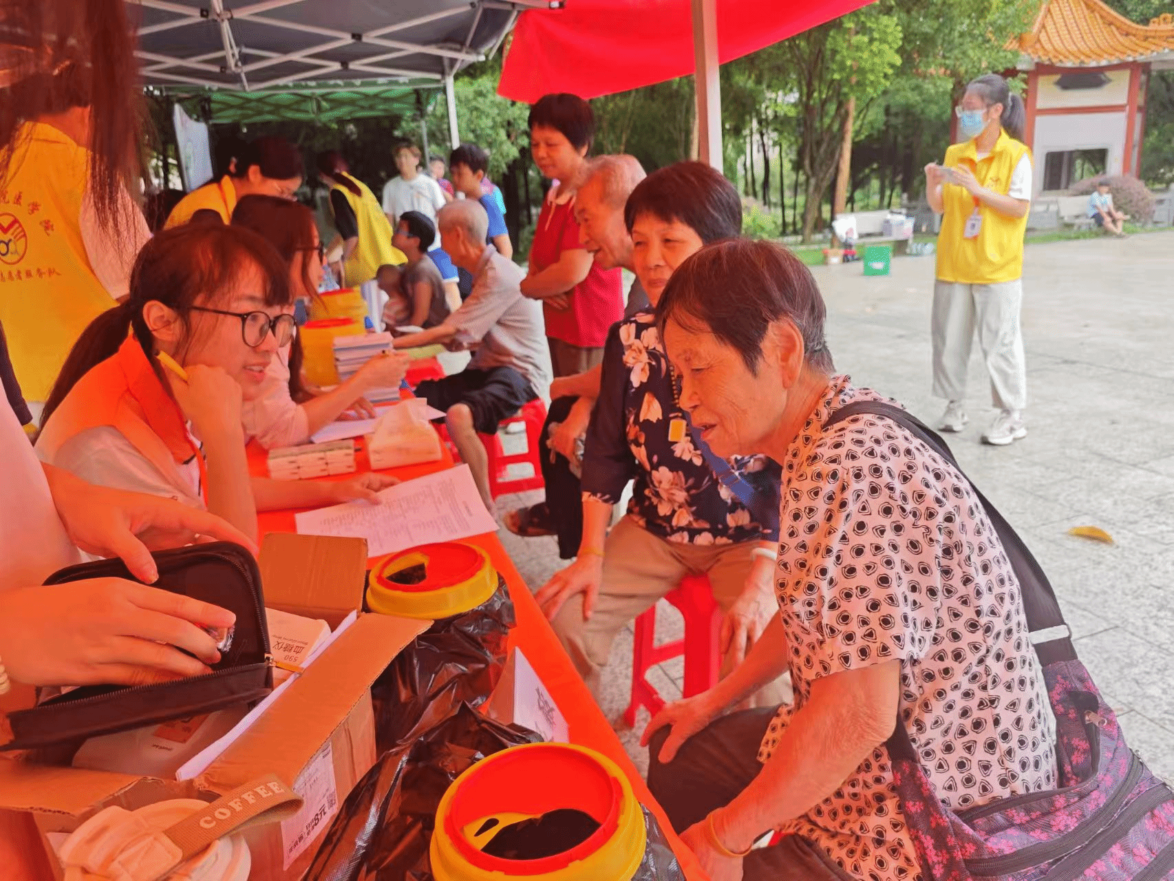 在医疗健康服务方面,各实践队充分发挥专业优势。“护你平安·健康下乡”团队在梅县区畲江镇开展义诊,为村民提供血压、血糖检测及中医按摩服务;“救在身边”急救宣讲团在丰顺县龙岗镇通过情景模拟教学,普及CPR和海姆立克急救法,受到当地政府高度认可。此外,实践队还结合乡村振兴需求,开展多样化服务。“客味薪传·青创印记”团队走访非遗传承人,整理客家美食文化档案;“无毒无诈,平安同行”普法宣讲团在兴宁市宁新街道开展防溺水、禁毒宣传;“医路童行·客家情暖”服务队在梅江区龙丰村为留守儿童开设健康安全课程,以客家童谣等生动形式传授卫生知识。