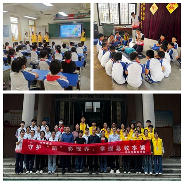 为推动“双百行动”向纵深发展,聚焦青少年视力健康与急救技能普及工作,筑牢乡村青少年的健康屏障。10月29日下午,我校医学院红医志愿者服务队前往丰顺县汤坑镇忠实学校,开展了以“守护‘睛’彩视界,掌握急救本领”为主题的“双百”健康科普活动。