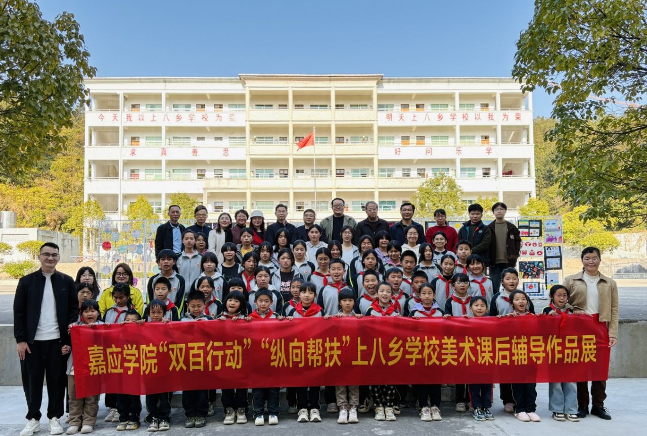 在八乡山镇贵人村,师生团队挥毫泼墨,笔力雄健,书写春联和福字,为当地干部群众送上美好祝福,现场氛围温暖融洽。在上八乡学校,我校组织了一个学期的课后美术辅导。校地联合举办美育作品展和颁奖仪式,集中展现了学生们的艺术才华,既彰显了教育帮扶的阶段性成果,也为乡村学校校园文化建设注入活力。